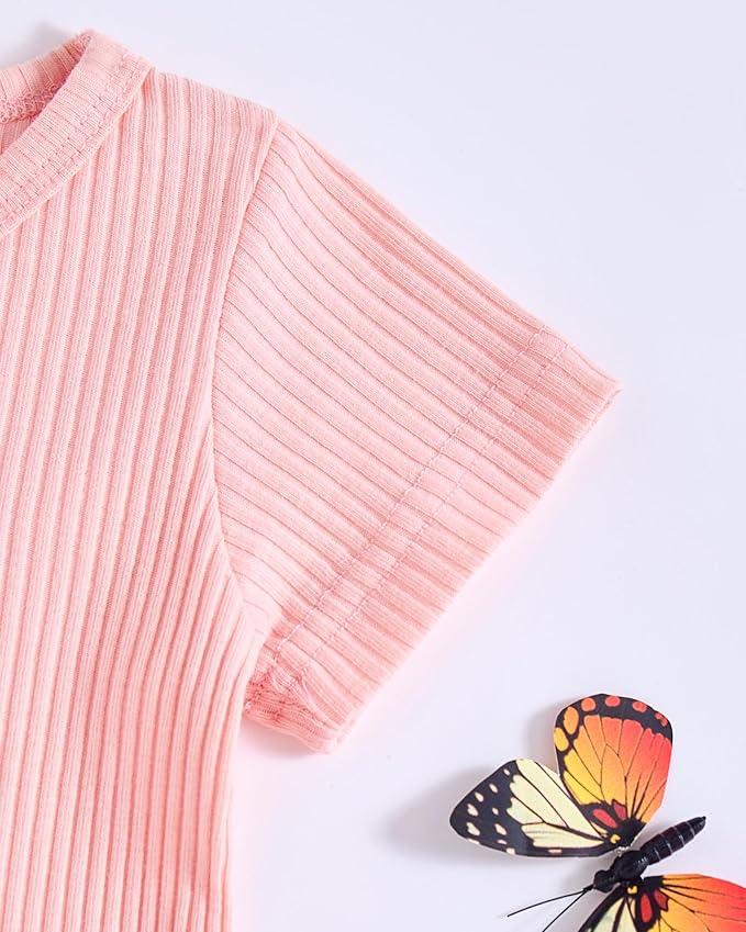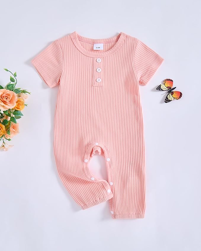 • Material---- Cotton blend material for baby girls short sleeve romper jumpsuit, comfortable and breathable baby summer clothes.