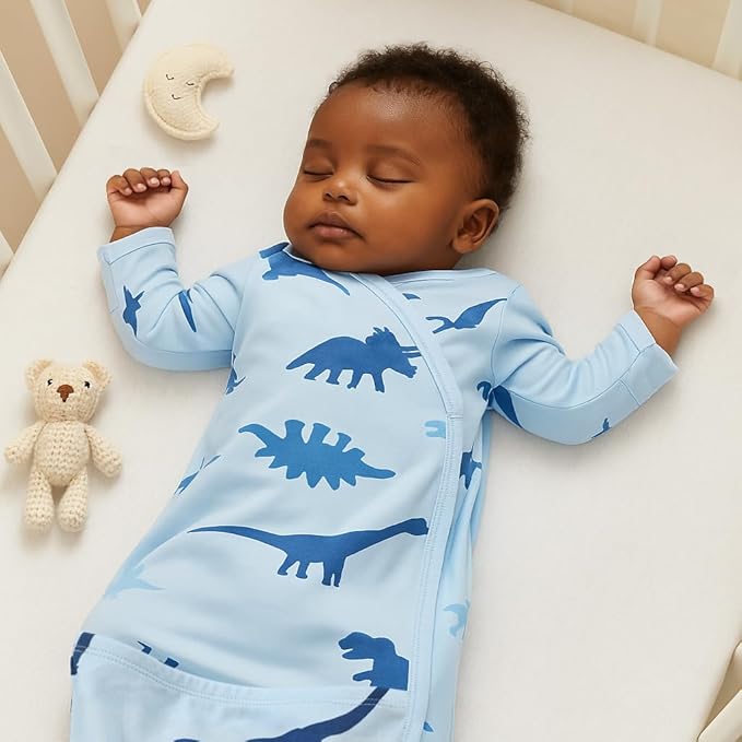 • Snug fitting baby nightgowns, flame retardant-free, extra long room to kick & grow