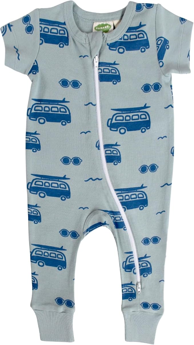 PARADE Organic Signature Print '2-Way' Zip Romper - Short Sleeve