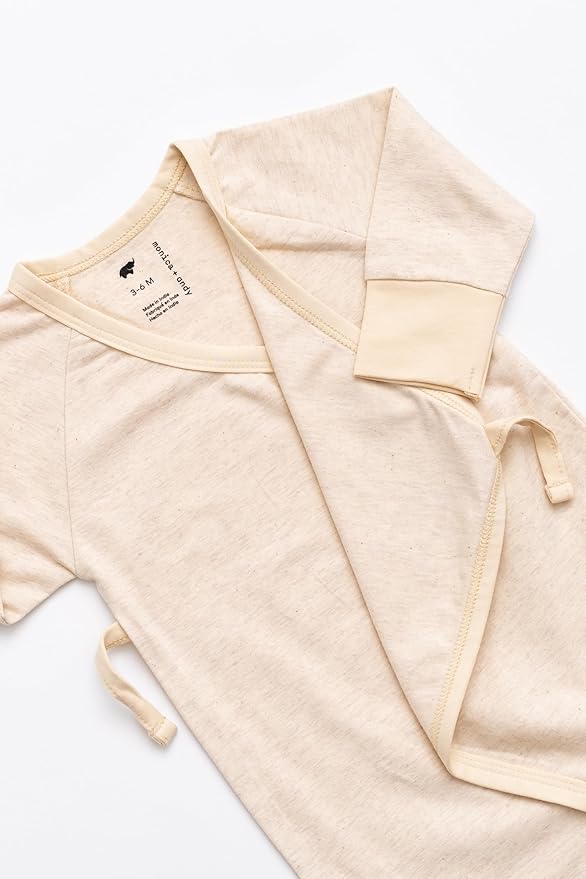 monica + andy Kimono Tie Long Sleeve One Piece, 100% Organic Baby Clothes for Girls & Boys, Preemie, Newborn & Infant