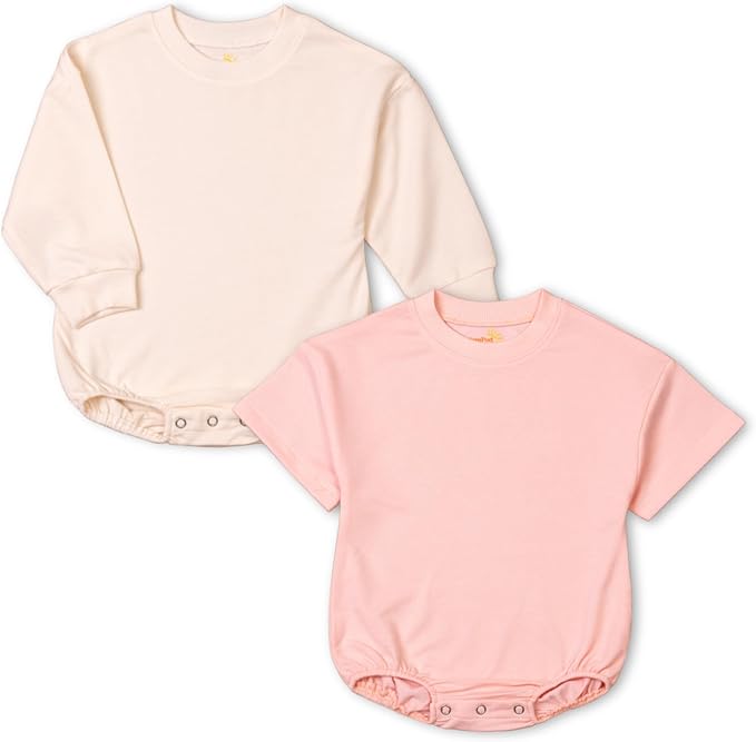 • ✔ 2-PACK LONG & SHORT SLEEVE SET – Includes one long-sleeve and one short-sleeve romper, offering versatility for different seasons. Ideal for layering in colder months or wearing separately in warm weather.