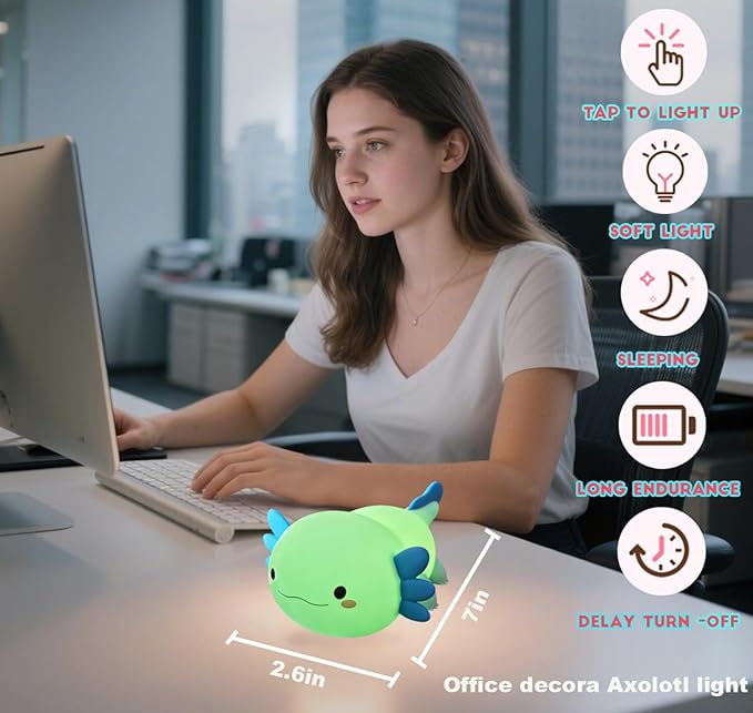 • Perfect Axolotl gifts:The Very Super Cute Night Light Is Used As A Bedside Lamp Not Only For Breastfeeding, Reading, And Preventing Falls During The Night, But Also As A Camping Light, Emergency Light, And Flashlight. Best Gift For Your Friends,Kids Or Yourself. Also A Ideal Gift For Valentine'S Day, Birthday,Children'S Day,Halloween,Christmas And New Year. Suitable For Outdoor Camping, Bedroom,College Dormitory,Office,Party Decoration. Also Very Suitable For New Mommy As Nursery Light