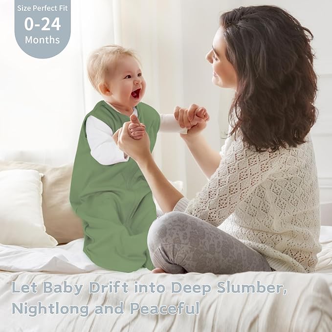 • Gentle and Comfy:Wrrernsin sleeping sack is crafted from 100% pure cotton fabric, soft and skin-friendly, with exceptional breathability to create a comfy sleeping space for babies. Meeting the safety standards of the US Consumer Product Safety Commission (CPSC), it ensures worry-free use for little ones. The 0.5 tog warmth level and sleeveless design effectively reduce underarm sweating, keeping babies dry and cozy all night—perfect for year-round use