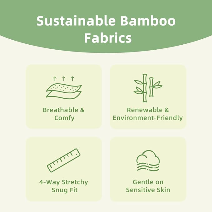 • SOFT FABRIC - Made with 95% viscose from bamboo and 5% spandex. Super breathable fabric with soft touch and cool on baby’s sensitive skin, absorbs sweat quickly, drives dampness away, provides baby ultimate comfort