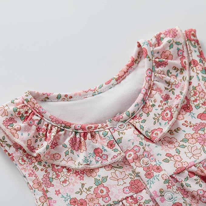 • FEATURES - Floral prints, sleeveless, ruffle collar bubble Bodysuit, with these adorable designs, your baby will get tons of compliments on it