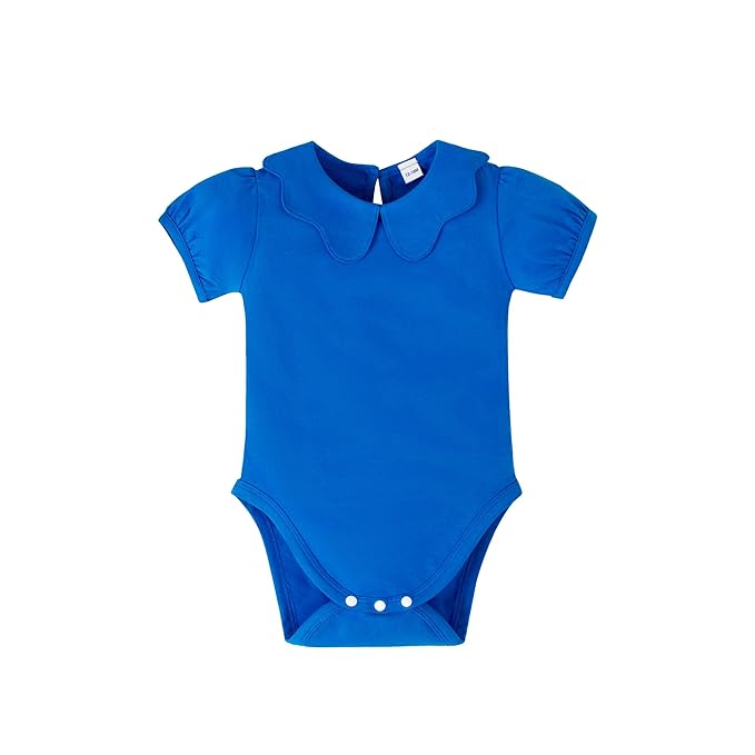 0-24M Infant Girls Ruffle Collar Romper Baby Girl Solid Color Bodysuit Casual Jumpsuit (Blue Short, 3-6 Months)