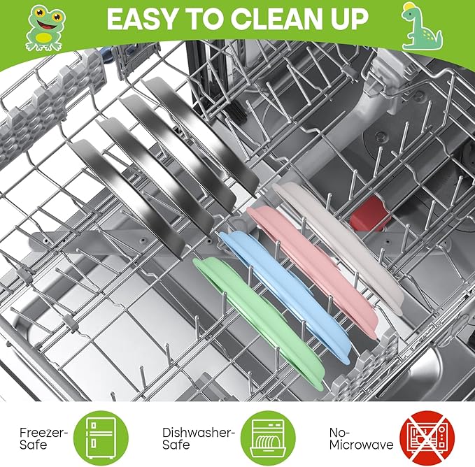 • Heat-Resistant Baby Plates: Double-layer insulation reduces surface heat by 40%. Smooth stainless steel baby plates repels sticky messes. Detachable silicone sleeve goes in dishwasher. No germs, no scrubbing