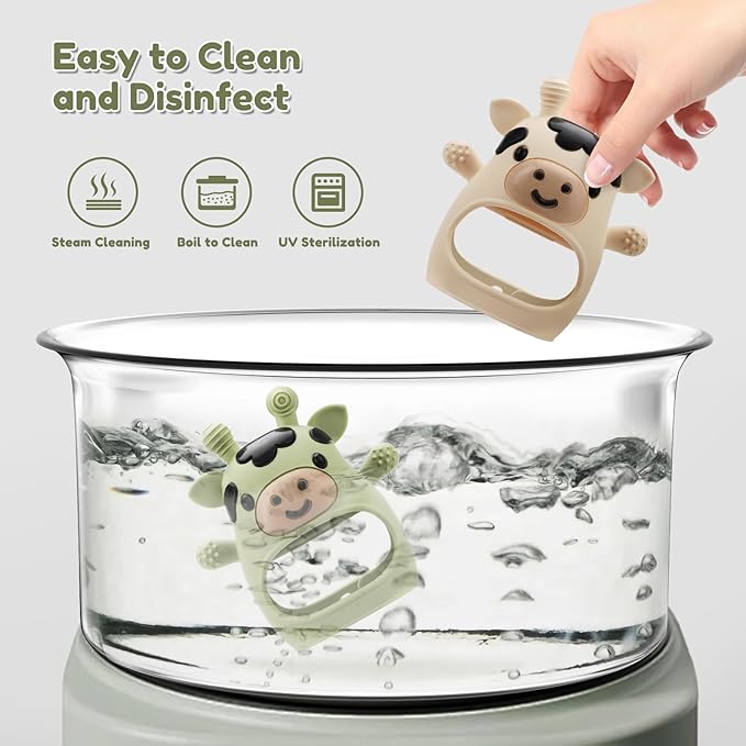 • Easy to Clean: This baby teether is made of premium food-grade silicone, resistant to high temperatures and safe for multiple cleaning methods. It can be sterilized with steam, boiled, placed in the dishwasher, or simply hand-washed, giving parents convenient options to keep it clean and hygienic for everyday use.