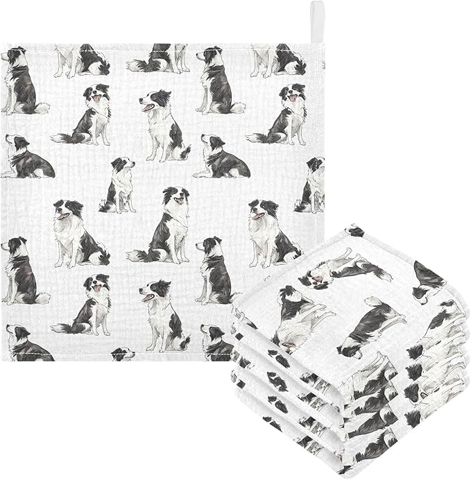 vvfelixl Baby Muslin Washcloths Border Collies Poses Baby Burp Cloths Cotton Babys Face Towel for Newborn Infants Boys Girls Soft and Absorbent 11.8 X 11.8 in, 3 Pack
