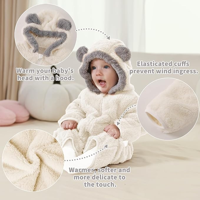 • Upgraded soft and warm fabric: The baby winter fleece outfit uses upgraded fabric to be warmer, softer and more delicate, and has increased the fabric weight to 280g. The baby newborn is very comfortable and warm in this newborn teddy bear outfit, which is perfect for cold weather