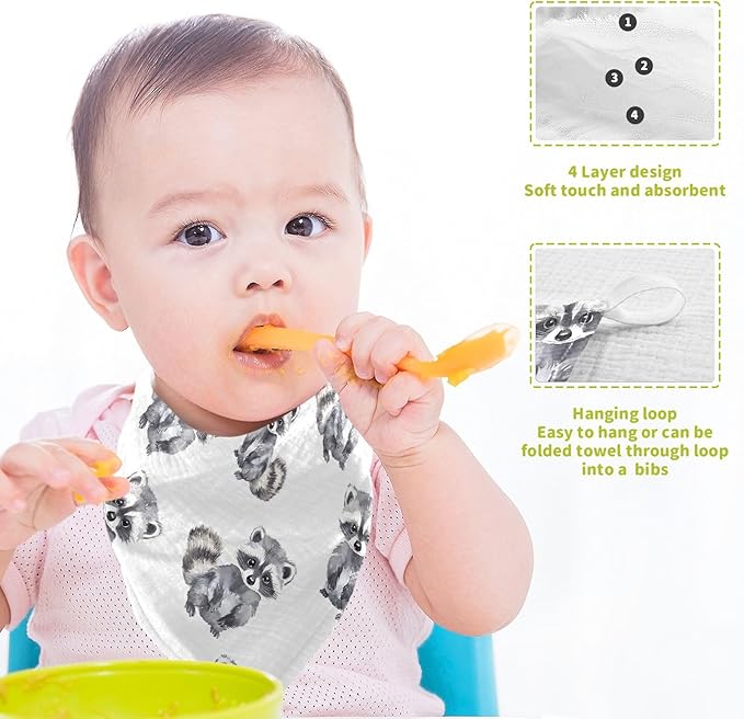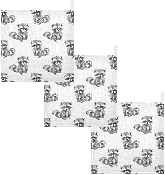 vvfelixl Baby Muslin Washcloths Little Raccoon Baby Burp Cloths Cotton Babys Face Towel for Newborn Infants Boys Girls Soft and Absorbent 11.8 X 11.8 in, 3 Pack