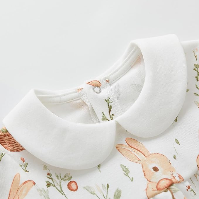 • FEATURES - Allover bunny pattern prints, peter pan collar, long sleeve, elasticized ruffled cuffs, with these adorable designs, your baby will get tons of compliments on it