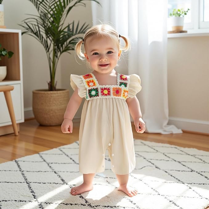 • Feature: Summer baby girl outfit boho onesie,baby girl bubble romper,boho crochet, square neck, fly sleeveless, cute baby girl summer clothes, back button,snap closure at the bottom, easy to change diapers and wear and take off. Great baby girl summer holiday present