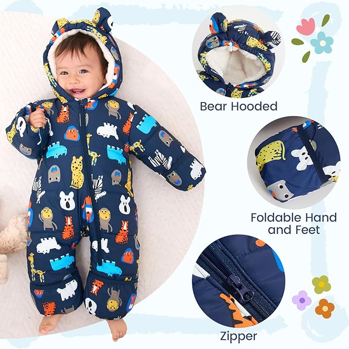 • 【Adorable Winter-Ready Designs】Choose from 5 playful prints in unisex colors for baby girls and boys. Each baby bear outfit includes 3D bear-ear hoods with elasticized brims for full wind protection. A must-have baby winter coat for tiny explorers!