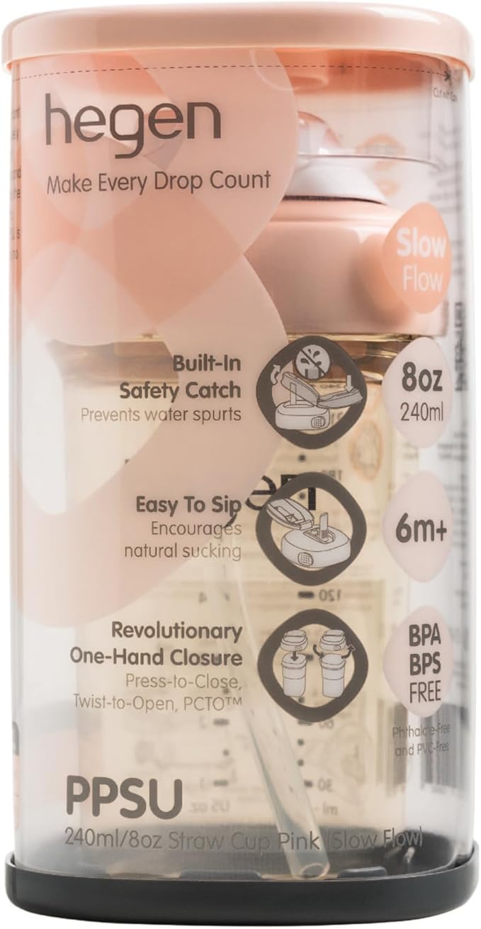 hegen PCTO™ 240ml/8oz Straw Cup PPSU Pink (Slow Flow) - 6 months and above