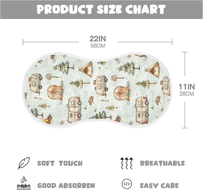 vvfelixl Cartoon Camping Caravan Burp Cloths for Baby Boy Girls Baby Washcloths Burp Rags 1 Pack