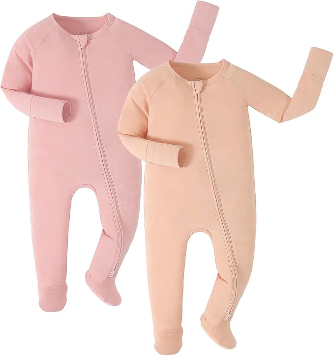 JunNeng Viscose from Bamboo Baby Sleeper,Newborn Footie Pajamas with 2 Way Zipper & Fold Over Mittens,0-12M