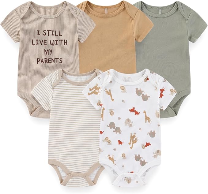 Baby Boy Girl Bodysuit 5 Pack Cotton Short Sleeve Romper Soft Baby Clothes Outfit 0-12 Month