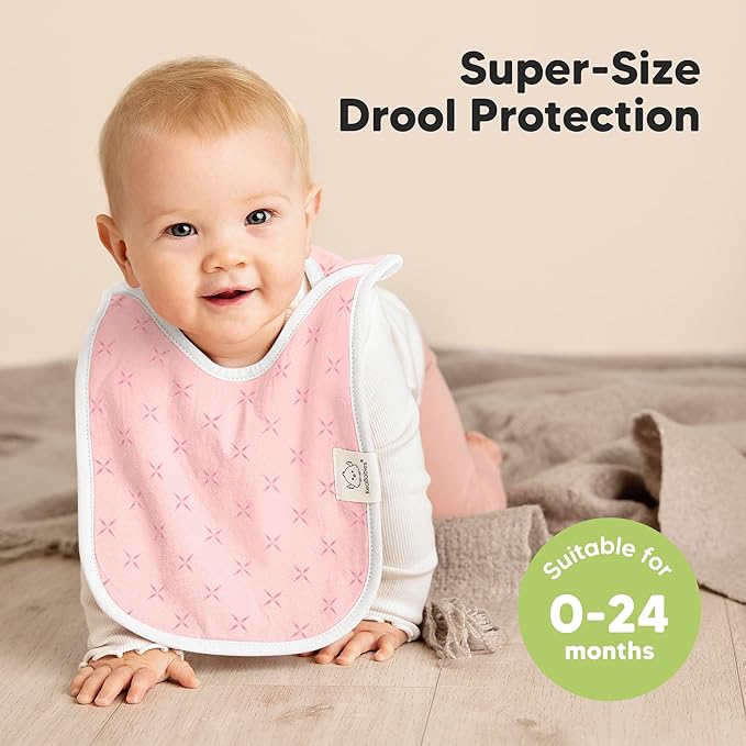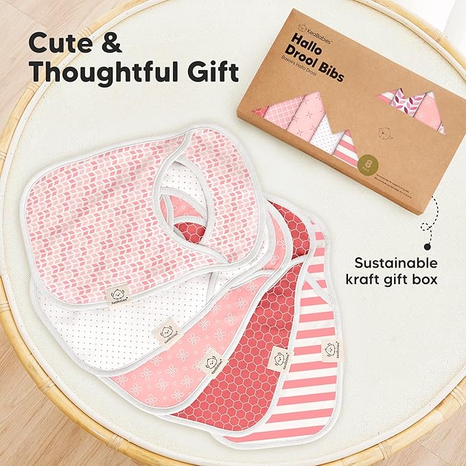 KeaBabies 8-Pack Baby Bibs for Boys, Girls - Pullover Bibs for Drooling Teething Baby Girl & Boy Toddler, Newborn, Soft & Absorbent, Cute Colors, Large Torso Coverage Keep Infant Clean & Dry (Blush)