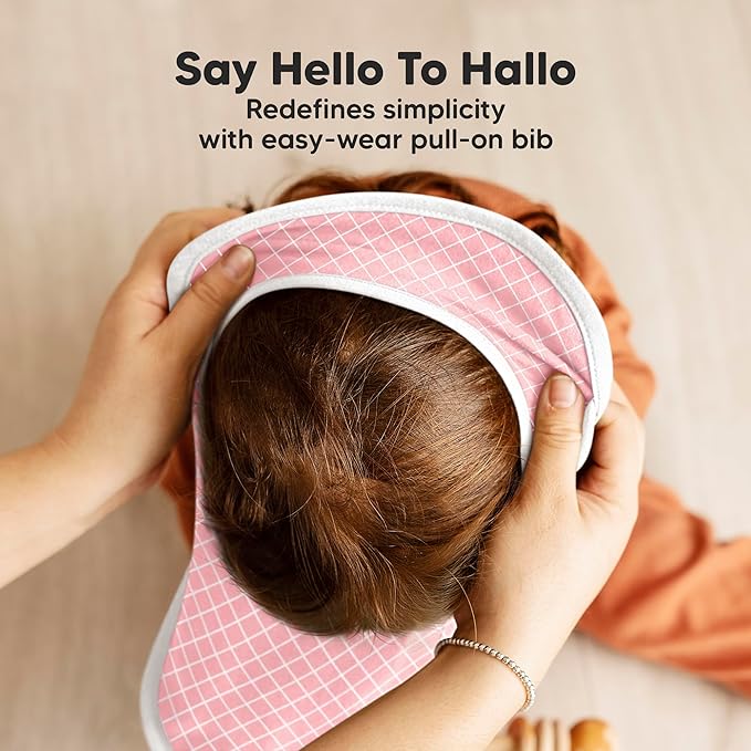 • For Active Infants, Toddlers - The Hallo Baby Teething Bib features a pullover lap shoulder design—no snaps, easy to put on. Just slip it over the baby's head like a t-shirt, and you’re all set. It stays on all day, even for the most active toddler.