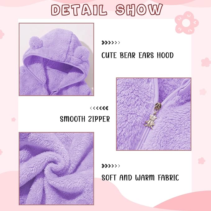 • [Cute Design] As a fleece jacket with hood for cute baby toddler, the winter jacket design is also very adorable, not only the fleece fabric gives a soft feeling, but the bear ears on the hood are more important. Your baby will look like a cute bear in this jacket, and we also offer a variety of different colors to choose from, such as brown, pink, khaki and more. Choose your favorite style for your baby!