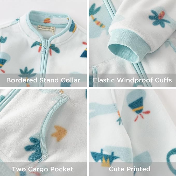 • 【Lightweight & Warm Fleece Jacket】Made of premium polyester fleece, DAVE&BELLA unisex baby fleece jacket is skin-friendly, low-pilling and low-shedding. The non-bulky design layers easily over shirts in spring/fall or under coats in winter, offering warmth without stiffness. The kids printed polar fleece jacket balances warmth and freedom of movement—ideal for playgrounds, school, or travel. Designed to stay comfy in car seats and during all-day adventures.