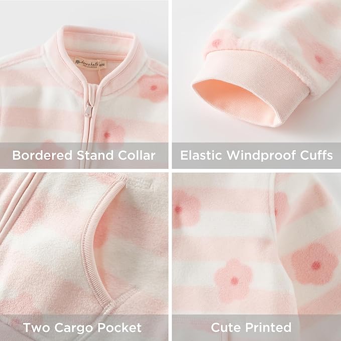 • 【Lightweight & Warm Fleece Jacket】Made of premium polyester fleece, DAVE&BELLA unisex baby fleece jacket is skin-friendly, low-pilling and low-shedding. The non-bulky design layers easily over shirts in spring/fall or under coats in winter, offering warmth without stiffness. The kids printed polar fleece jacket balances warmth and freedom of movement—ideal for playgrounds, school, or travel. Designed to stay comfy in car seats and during all-day adventures.