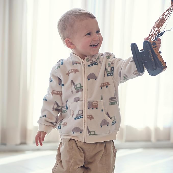 • 【Lightweight & Warm Fleece Jacket】Made of premium polyester fleece, DAVE&BELLA unisex baby fleece jacket is skin-friendly, low-pilling and low-shedding. The non-bulky design layers easily over shirts in spring/fall or under coats in winter, offering warmth without stiffness. The kids printed polar fleece jacket balances warmth and freedom of movement—ideal for playgrounds, school, or travel. Designed to stay comfy in car seats and during all-day adventures.