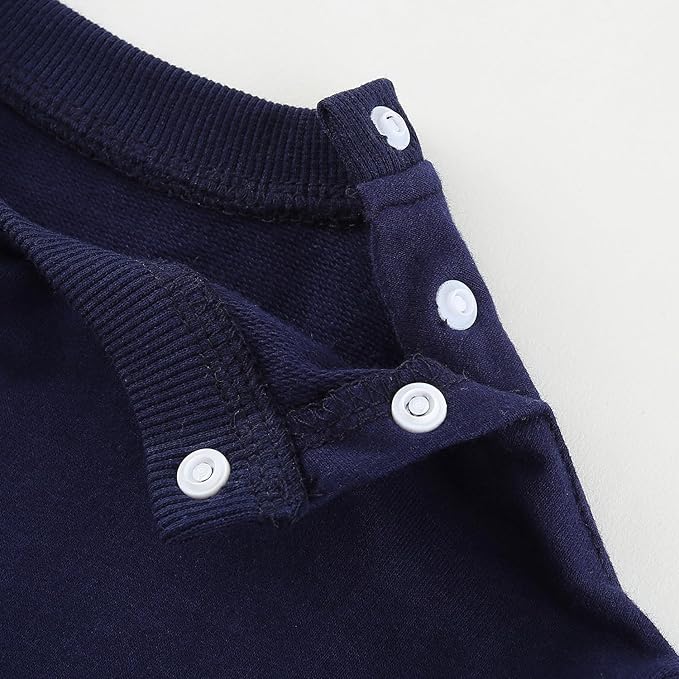 • The baby boy pants come with a comfortable elastic waistband and crinched hem for a cute and fashion look,paired with a pullover sweatshirt featuring snap-shoulder closures for effortless dressing.