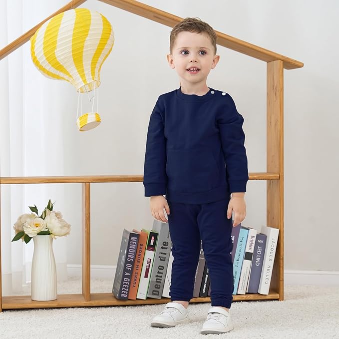 • This toddler baby long sleeve sweatshirt and sweatpant jogger pants are made from 100% cotton French terry with a durable wash to resist pilling,shedding,and color-fade,this baby boy clothing set stays soft and vibrant wash after wash.