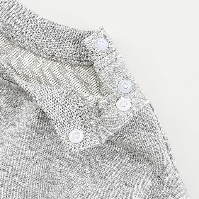 • The baby boy pants come with a comfortable elastic waistband and crinched hem for a cute and fashion look,paired with a pullover sweatshirt featuring snap-shoulder closures for effortless dressing.