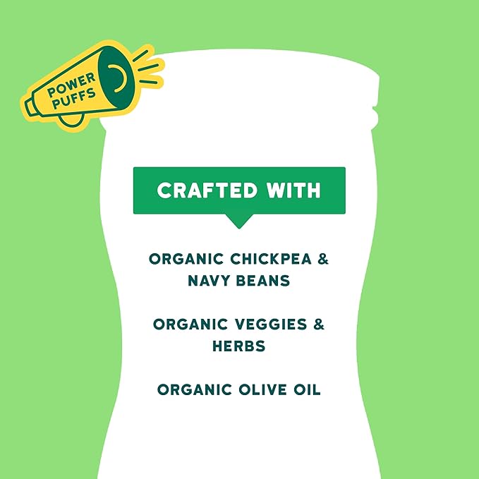 • Protein-Packed Puffs: Our organic toddler snack is perfect for growing bodies with a punch of chickpea and navy bean protein. They're designed to satisfy snack cravings while offering real nourishment for your mini foodie