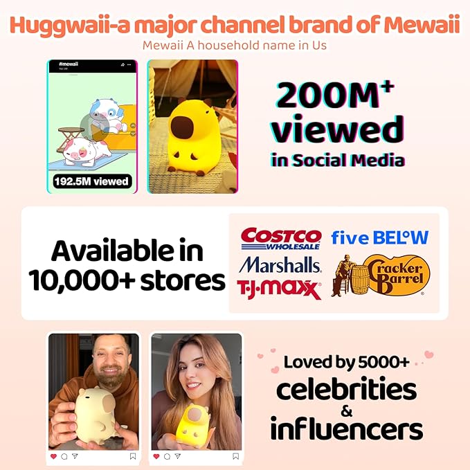 • More Than a Night Light - Huggwaii squishy capybara lights Up Every Moment! This adorable capybara lamp soothes with warm glow for bedtime, doubles as a gentle nursing light for midnight feeds (no harsh glare!), and transforms into a cozy bedtime ritual light for stories & lullabies. Tap to adjust brightness, use it day or night - from baby’s nursery to your relaxation corner. Whether you're reading before bed, working, going to the bathroom at night, or scrolling your phone late, this capybara light gives you handy light. One cute capybara night light, endless uses for the whole family!
