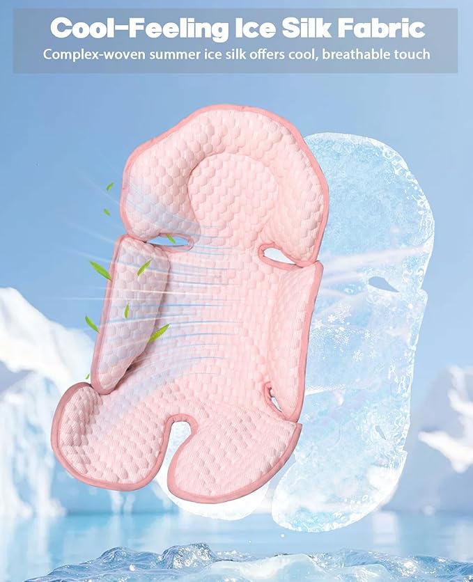 • Reversible Cushion for All Seasons: The reversible design is convenient, offering both a warm and cool side for different seasons. One side is cool-feeling ice silk, perfect for summer, and the other is minky dot cotton, ideal for cooler temps. It's a fantastic way to add an extra layer of snugness to your car seat or stroller.