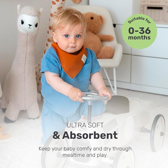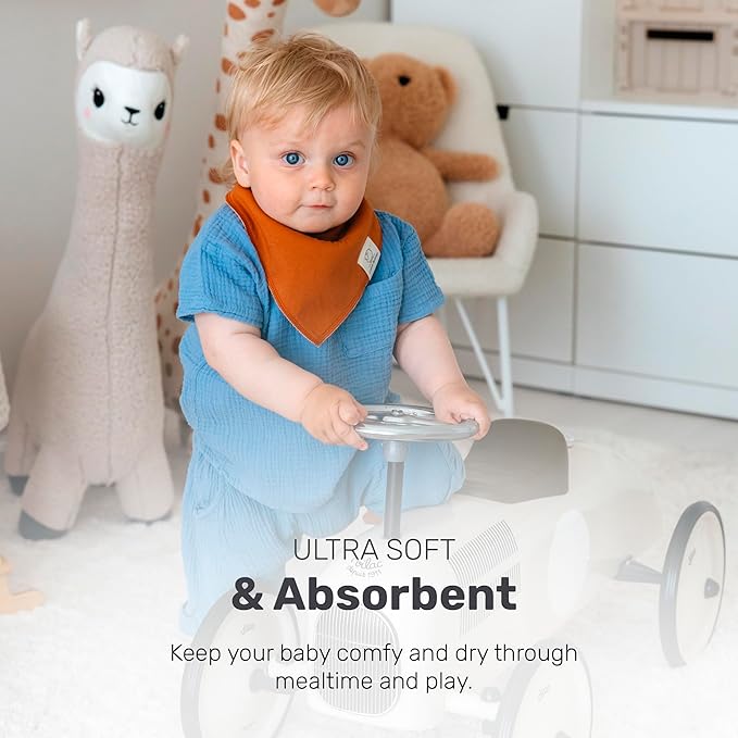 • Ultra Soft and Absorbent: Crafted from gentle cotton that easily absorbs dribbles, milk spills, and teething drool, these bandana bibs keep your baby clean and comfortable throughout feeding and play