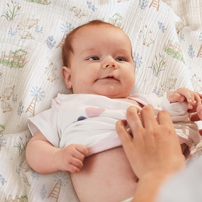 • MULTI-FUNCTIONAL USES: Baby muslin swaddle blanket can be used in many different ways, support infants and parents as a tummy time blankie, nursing cover up, changing table or stroller cover. The swaddling blanket can be used all around the home or going out as they come in super handy when bathing, feeding, burping, swaddling or cleaning baby. Reusable and very soft, breathable and absorbent.
