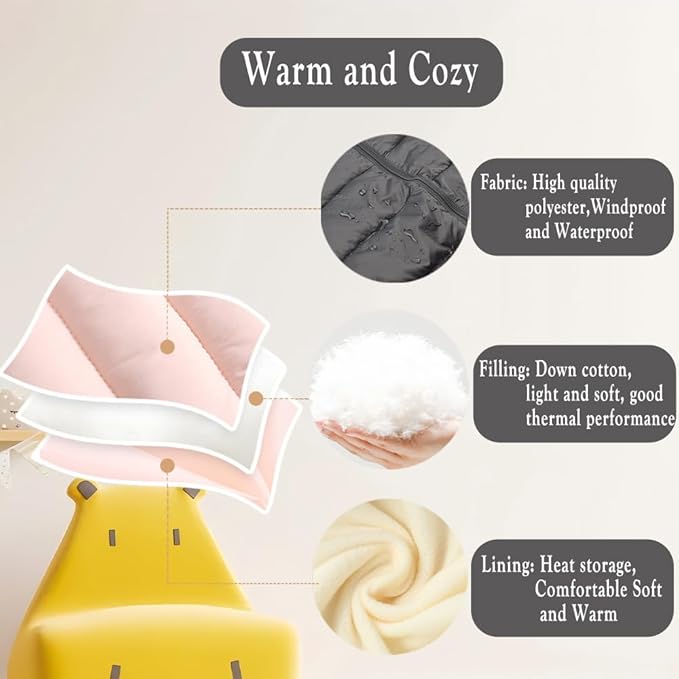 • ILYBOZ toddler snow suit is made of cotton and polyester fiber,The inside is fleece-lined,soft and cozy,and the outer layer will be water-resistant (tightly woven), you can wipe it easily