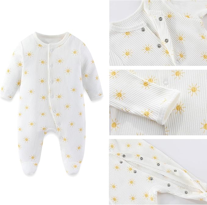 • Fabric: pure cotton skin-friendly fabric, neckline and cuffs are carefully sewn to care for baby's delicate skin