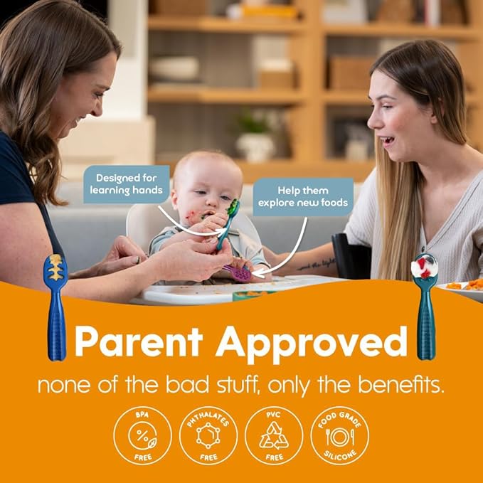 • Baby Utensils for Ages 6 Months to 18 Months: No scooping, no balancing, and best of all: no wrong way to hold it! Thicker, contoured handled baby spoons designed to comfortably and securely fit a child's hand.