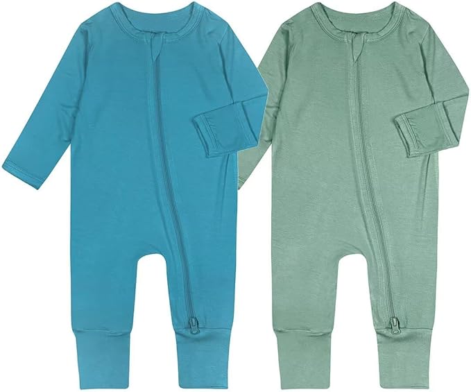 Teach Leanbh Baby Boys Girls 2 Pack Bamboo Viscose Pajamas with Mitten Cuffs 2 Way Zipper Long Sleeve Romper Sleep and Play