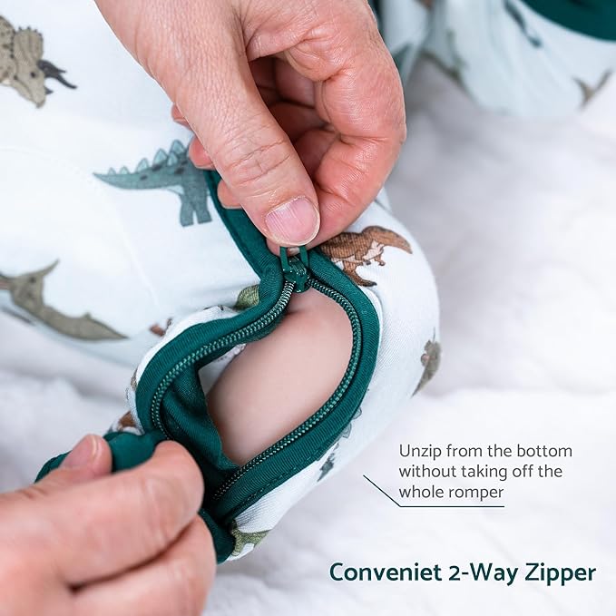 • Convenient Diaper Changes - The baby pajamas comes with a premium 2-way Y.K.K. zipper that makes diaper changes quick and easy. Stylish and practical, the 2-way zipper makes it easy to unzip from the bottom without taking the whole outfit off. Parents will love how it saves time and keeps their baby comfortable during changes