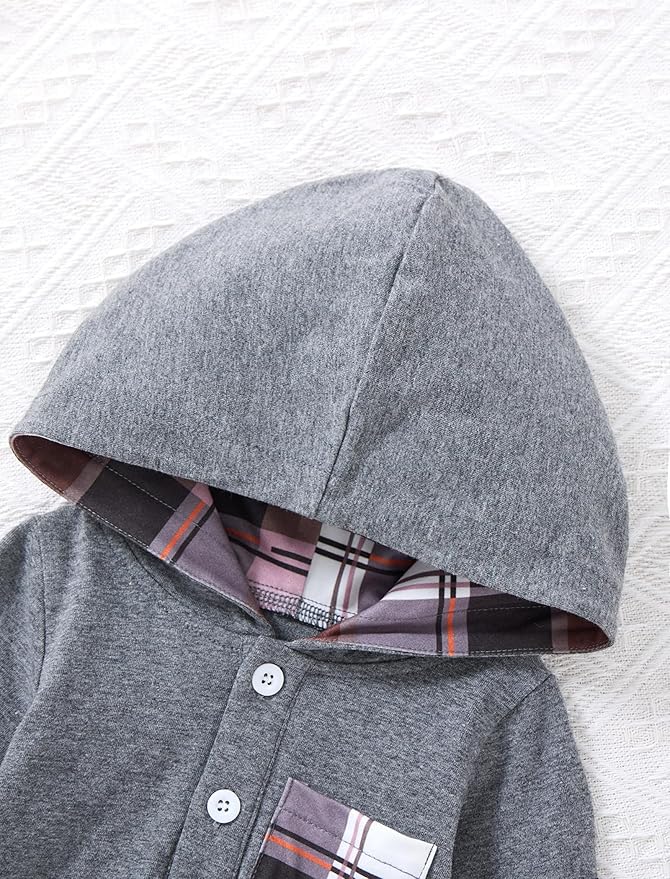• Design: New born clothes features a stylish plaid hoodie romper with button details and matching plaid pants, bringing timeless charm and a touch of retro flair to your baby’s wardrobe