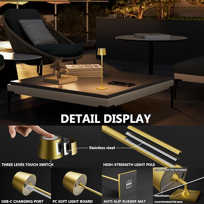 • 5. FULL METAL BUILD WITH STABLE BASE: Crafted from solid aluminum alloy with a weighted, non-slip base, this compact table lamp feels sturdy and premium. The refined metal finish adds modern elegance to nightstands, desks, or small shelves, while remaining durable for everyday home use and family-friendly spaces.