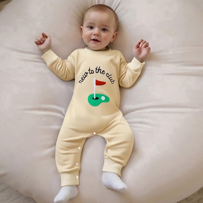 Newborn Baby Boy Fall Outfit Romper Golf Court Embroidery Long Sleeve Onesie Jumpsuit Bodysuit Cute Infant Clothes