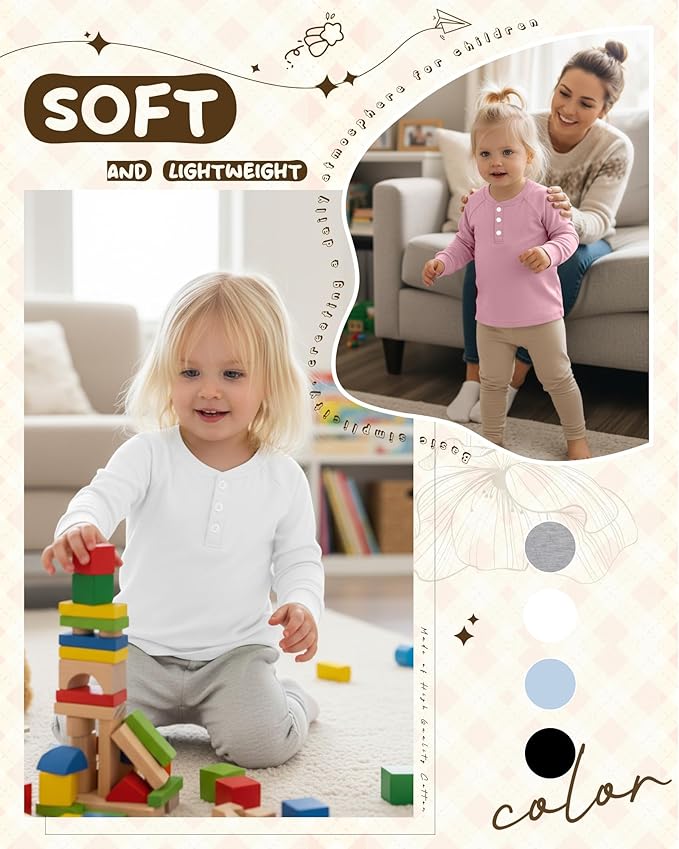 • Detail Design: our toddler henley tees are styled with button front placket and long sleeve; Your kid can wear it alone or layer it up; Comfortable and beautiful; Even children can put on and take off clothes by themselves