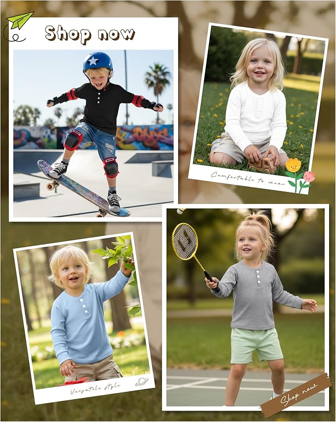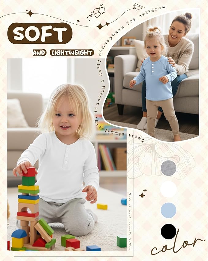 • Detail Design: our toddler henley tees are styled with button front placket and long sleeve; Your kid can wear it alone or layer it up; Comfortable and beautiful; Even children can put on and take off clothes by themselves