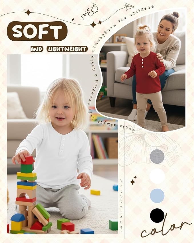 • Detail Design: our toddler henley tees are styled with button front placket and long sleeve; Your kid can wear it alone or layer it up; Comfortable and beautiful; Even children can put on and take off clothes by themselves