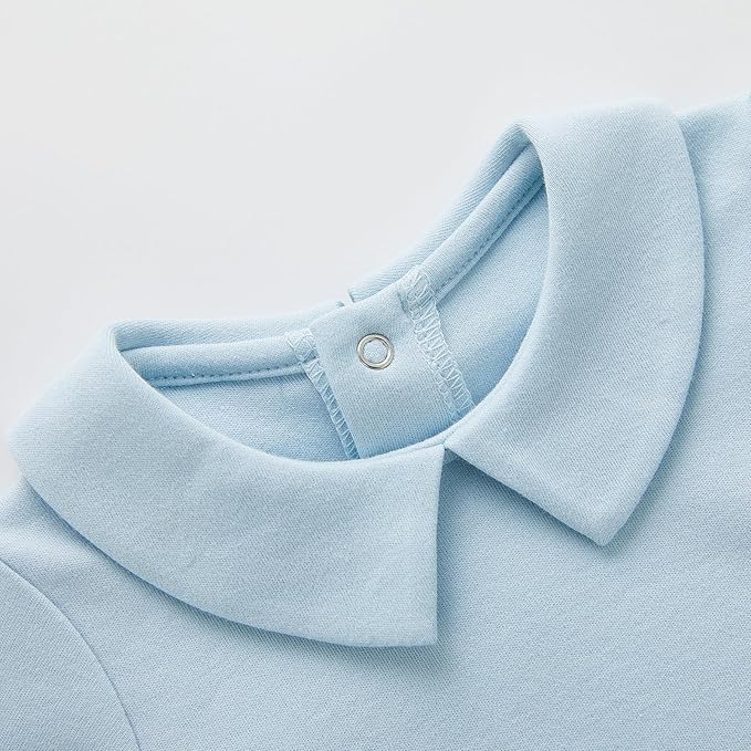 • SIMPLE YET FASHION - Features solid color, unique peter pan collar, long sleeve and one-piece design. Reversible mittens prevent baby scratching themselves. (only size 0-3m and 3-6m have mittens). Your little one will feel elegant and cozy in our bodysuit
