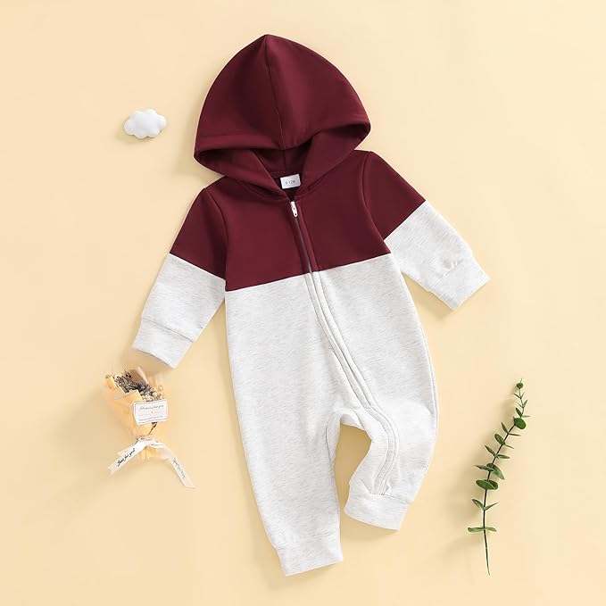 • Classic Design: Baby boy rompers with zipper, long sleeve, hooded, color block is perfect for fall winter