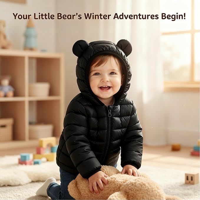 • Warm-keeping: The cute hooded design with bear ears at the top of toddler coat adds an adorable touch to your baby's outfit, keeping your baby's head and ears cozy and snug. Toddler coat feature windproof elastic bands at the cuffs and bottom which preventing any cold air from entering and keeping warmth locked in